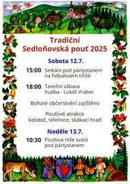 Srdečně zveme na již tradiční Sedloňovskou pouť a těšíme se na setkání v sobotu a v neděli 12. a 13.července 2025