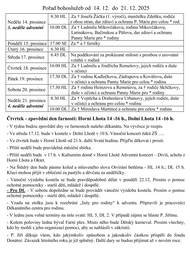 Ve farnosti se od 14. do 21. prosince 2025 konají pravidelné bohoslužby a speciální akce.