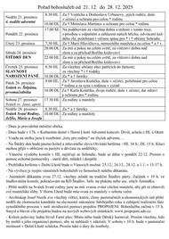 V týdnu od 21. do 28. prosince 2025 se uskuteční bohoslužby, včetně slavnostních obřadů na Štědrý den.