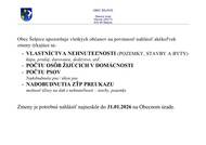 Obec Šelpice upozorňuje všetkých občanov na povinnosť nahlásiť akékoľvek zmeny týkajúce sa: - VLASTNÍCTVA NEHNUTEĽNOSTI - POČTU OSÔB ŽIJÚCICH V DOMÁCNOSTI - POČTU PSOV - NADOBUDNUTIA ZŤP PREUKAZU Zmeny je potrebné nahlásiť najneskôr do 31.01.2026 na Obecnom úrade.