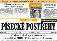 Výběrové řízení na provozovatele MHD v Písku provázejí obstrukce uchazečů ■ Silnice k nádraží v Čížové se dočká opravy ■ Názor obyvatelky Purkratic: O drtičce suti se rozhoduje o nás bez nás ■ Semice na vítězné vlně! Co je v týmu jinak, prozradil Jakub Micka ■ Mirovice nedotáhly dvoubrankový náskok. Co se stalo podle kapitána Jiřího Vitáka? ■ Sršni prohráli v Pardubicích, o čtvrtfinále musí zabojovat v předkole ■ Házenkářky přivezly z Olomouce těsnou výhru, teď je čeká domácí odveta