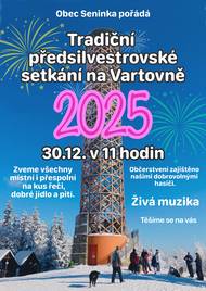Srdečně zveme všechny spoluobčany, přátele, známé i přespolní na tradiční Předsilvestrovské setkání na Vartovně. Přijďte s námi strávit hezký den plný dobré nálady. Atmosféru nám zpříjemní naše oblíbená živá hudba. Občerstvení zajišťuje náš sbor dobrovolných hasičů, který se na vás těší s výbornými dobrotami a teplým pitím. Společně si popřejeme do nového roku 2026 a užijeme si pohodovou předsilvestrovskou náladu na Vartovně. Těšíme se na vás.