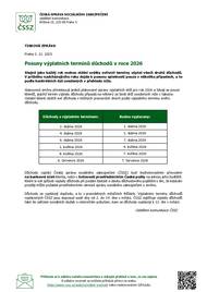 Stejně jako každý rok mohou státní svátky ovlivnit termíny výplat všech druhů důchodů. V průběhu nadcházejícího roku 2026 dojde k posunu splatnosti pouze v několika případech, a to podle konkrétních dat uvedených v přehledu níže. Česká správa sociálního zabezpečení