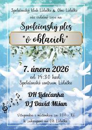 Obec Lidečko a Společenský klub Lidečko vás srdečně zvou na Společenský ples „v oblacích“, který se uskuteční v sobotu 7. února 2026 od 19:30 hodin ve Společenském centru v Lidečku.