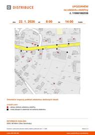 Informujeme vás o přerušení dodávky elektrické energie ve čtvrtek 22. 1. od 8 - 14 hodin v části ulice Hlavní. Odstávka zahrnuje tyto lokality: Hlavní: č.p. 16, 19, 26, 39, 42, 43, 44, 58, 83, 96 kat. území Senohraby: parc.č. 414/4, 949