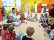 Dnes naší školku navštívila paní učitelka Mlčkovská ze základní školy.