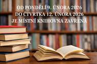 Místní knihovna oznamuje svým čtenářům uzavření knihovny od pondělí 9. února do čtvrtka 12. února 2026.