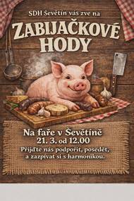 SDH Ševětín Vás srdečně zve na ZABIJAČKOVÉ HODY, které se konají Na faře v Ševětíně, v sobotu 21. března 2026 od 12:00 hodin. Přijďte hasiče podpořit, posedět a zazpívat si s harmonikou.