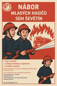 SDH Ševětín pořádá nábor mladých hasičů, vhodné pro děti od 5 let. Součástí tréninků jsou hry a cvičení, ukázky techniky a vybavení, soutěže a výlety. Pro více informací kontaktujte trenéra Pavla Vokůrku ml.: 604 970 783.