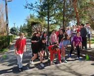 Žiaci školy pri rozdávaní balíčkov pre seniorov v rámci mesiaca úcty k starším.