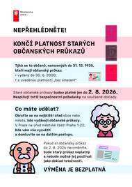❗Týká se občanů narozených do 31. 12. 1935, kteří mají občanský průkaz:❗ • vydaný do 30. 6. 2000 • s platností „bez omezení“ Tyto průkazy budou platné pouze do 2. 8. 2026. Poté nebudou uznávané jako doklad totožnosti. Výměna je zdarma. Nejbližší místo pro občany naší obce: Městský úřad Česká Lípa ul. U Synagogy 2983 Úřední hodiny: Pondělí, středa: 8:00–17:00 Úterý, čtvrtek, pátek: 8:00–11:30 Kontakty: 487 881 306, 487 881 308 Více informací zde: https://www.mucl.cz/oddeleni-evidence-obyvatel-a.../os-1230
