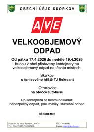 Vážení spoluobčané, v příloze zasíláme aktualizovaný kalendář svozu odpadů. Změna nastává pouze u svozu popela. Firma AVE byla z provozních důvodů nucena tento svoz v období duben-květen 2026 přesunout na sobotu. První dubnový svoz bude tedy až 4.4.2026 Omlouváme se za způsobené komplikace a děkujeme za pochopení! OÚ Skorkov