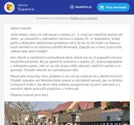 : V stredu 15.4. od 8 do 11 h probehne blok. cisteni na ul. Cechova mezi Svehlovou a Brnenskou. Prosime ridice, aby vcas preparkovali. Dekujeme!