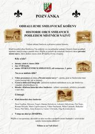 Odhalujeme smilovické kořeny Víte, proč se některá místa ve Smilovicích jmenují tak, jak se jmenují? Klub historiků obce Smilovice vás zve na setkání, které vás provede historií obce pohledem starých místních názvů, map a pamětí. Pátek 6. února 2026 od 17:00 Sportcentrum Smilovice – sál restaurace, 1. patro Čeká vás videoprezentace „Původní místní názvy“ a příběhy, které formovaly naši obec. Přijďte si připomenout, odkud pocházíme a možná se dozvíte něco, co vás překvapí. Vezměte sousedy, sdílejte dál a přijďte!