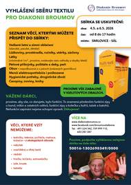 Máte doma oblečení nebo věci, které už nevyužijete, ale mohou ještě posloužit dál? Přineste je do sbírky a pomozte lidem v nouzi. 📅 Kdy: 4. a 5. května 2026 ⏰ Čas: 8:00–17:00 📍 Kde: Smilovice – sál 📦 Prosíme vše zabalit do igelitových pytlů.