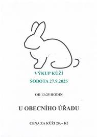 Výkup kůží - v sobotu 27.9. u OÚ od 13:25 hodin, cena za kůži 20,-- Kč.