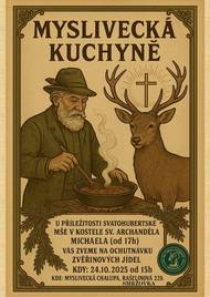 Myslivecký spolek zve na Svatohubertskou mši v pátek 24. října od 17 hodin v kostele sv. Archanděla Michaela. V myslivecké chalupě (č. p. 229, Rašelinová ulice) bude od 15 hodin (do vyprodání zásob) připravena zvěřinová kuchyně.