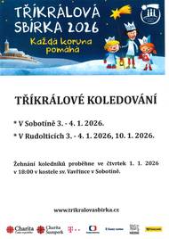 v Sobotíně proběhne Tříkrálové koledování 3. - 4.1.2026 > v Rudolticích proběhne Tříkrálové koledování 3. - 4. 2026 a 10.1.2026 > Žehnání koledníků proběhne ve čtvrtek 1.1.2026 v 18:00 hodin v kostele sv. Vavřince v Sobotíně.