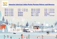 Pošta Partner Petrov nad Desnou upozorňuje na dočasnou změnu hodin pro veřejnost. V pátek 12.12.2025 bude pošta otevřena od 8:00 do 11:30 hodin.
