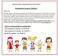> Program "Školička" bude probíhat každých 14dní a poprvé 18.2.2026 a poslední proběhne 27.5.2026 > časově vždy od 15:00 hodin do 16:00 hodin > termíny budou v měsíční nabídce mateřských škol na www.skolydesna.cz > kontakty přihlášek pro zájemce do mateřských škol jsou uvedeny v přiloženém le
