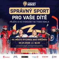 Pozvání na akci Týden hokeje, která se uskuteční ve čtvrtek 22.1.2026 od 16:30 na zimním stadionu v Rychnově nad Kněžnou. Týden hokeje je série sportovních akcí pro děti ve věku 4 – 8 let a jejich rodiče, kterým se naskytne unikátní příležitost seznámit se s hokejovým prostředím.