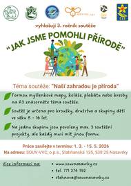 Před 6 dnyVe spolupráci s Českým svazem chovatelů, Českým rybářským svazem, Středním odborným učilištěm včelařským, Českým svazem včelařů a Českým zahrádkářským svazem vyhlašujeme 3. ročník kreativní soutěže pro kroužky, dětské skupiny i třídní kolektivy „Jak jsme pomohli přírodě“. V loňském roce tuto soutěž vyhrál Myslivecký kroužek Zelenáč Petrovice u Sedlčan. Kolektivní práce je možné zasílat od 1. března do 15. května 2026 na SOUV-VVC, o.p.s., … Jak jsme pomohli přírodě – Soutěž plná fantazie pro kroužky, dětské skupiny i třídy Číst dál »Pekař ze Srí Lanky vyhrál soutěž o nejlepší pařížskou bagetu