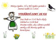 Srdečně vás zveme na tradiční vynášení zimy ze vsi, které se uskuteční v neděli 22. března. Společně se vydáme průvodem přivítat jaro a rozloučit se se zimou. Sraz: ve 13:45 Místo: před školou Trasa: směr Horní konec