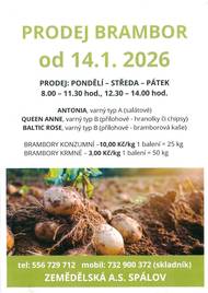 Zemědělská a.s. Spálov – prodej brambor Stále v prodeji kvalitní konzumní i krmné brambory z vlastní produkce. Kontakt: 732 900 372 (skladník) 556 729 712