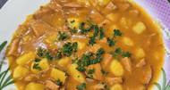 Sytý bramborový guláš s opečeným špekáčkem a česnekem: Pomalu tažený základ a dokonale hustá omáčka