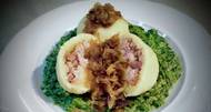 Kuřecí roláda plněná špenátem, vejci a rajčátky + šťouchané brambory
