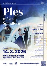 Před 1 měsícemPles města Špindlerův Mlýn - prodej lístku zahájenVážení a milí spoluobčané, přijměte mé srdečné pozvání na tuto společenskou událost, která se uskuteční v prostorách PINIA Hotel & Resort, 14. března 2026 od 19:30 hodin. Ples je vyjímečnou přiléžitostí setkat se v klidné a slavnostní atmosféře, užít si hudbu a tanec. Večer, kdy se na okamžik zastaví čas, vzniká prostor pro setkání a radost z příjemného okamžiku. Staňte se součástí tohoto slavnostního večera. Těším se na setkání s vámi. Martin Jandura starosta města Špindlerův Mlýn _____ Vstupenky v předprodeji!!! KDE: Turististické informační centrum, Městský úřad CENA: 590 Kč (společenský večer včetně rautu) Tel.: 499 523 656.