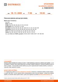 Dne 18.11.2025 od 7,30 do 15,30 bude přerušena dodávka elektrické energie v části obce Srch. Dotčené nemovitosti viz příloha.
