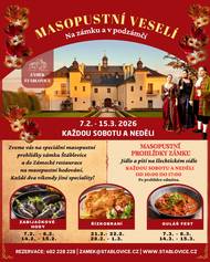 Vážení návštěvníci, s velkou radostí vás Zámecký resort Štáblovice opět zve na MASOPUSTNÍ VESELÍ NA ZÁMKU A PODZÁMČÍ ŠTÁBLOVIC. Masopustní maškary, karnevaly a bujaré veselí patřily k vrcholům roku – slavila je nejen šlechta, ale i panovníci. První týdny roku byly na zámcích ve znamení hodování, společenských setkání a okázalých hostin. Zveme vás na tematické masopustní prohlídky zámku Štáblovice s tématem JÍDLO A PITÍ NA ŠLECHTICKÉM SÍDLE. BĚHEM PROHLÍDKY SE DOZVÍTE: ⚜️jak probíhaly masopustní oslavy a karnevaly u šlechty ⚜️ jaká pravidla platila při stolování a zámeckých hostinách ⚜️ co se podávalo na šlechtických stolech od středověku až do 19. století ⚜️jak vypadaly barokní hostiny a jaké exotické nápoje se při nich popíjely Průvodce v historickém kostýmu vás provede slavnostně vyzdobenými zámeckými interiéry a na závěr vás čeká zasloužená odměna. MASOPUSTNÍ PROHLÍDKY ZÁMKU 🗓️ 7. února – 15. března 2026 📍 každou sobotu a neděli | 🕰️ 10:00–17:00 🎟️ Vstupné: dospělí 220 Kč | snížené 180 Kč | děti 7–17 let 100 Kč | do 6 let zdarma 📞 Doporučujeme rezervaci: 602 228 228 | zamek@stablovice.cz (Rezervujete e-mailem? Přidejte prosím tel. číslo – rychleji s vámi domluvíme volný termín.) 🍖🍺 MASOPUSTNÍ HODY V ZÁMECKÉ RESTAURACI Po prohlídce (nebo klidně i bez ní) vás zveme na tematické víkendové hody: Každé dva víkendy jiné speciality. • ZABIJAČKOVÉ HODY (7.–8. 2. a 14.–15. 2.) • ŘÍZKOBRANÍ (21.–22. 2. a 28. 2.–1. 3.) • GULÁŠ FEST (7.–8. 3. a 14.–15. 3. ) (vždy v sobotu a neděli) OTEVÍRACÍ DOBA 🕰️ SO–NE 10:00–19:00 📞 Doporučujeme rezervaci do restaurace: 602 228 228 | zameckarestaurace@stablovice.cz (Rezervujete e-mailem? Přidejte prosím tel. číslo – rychleji s vámi domluvíme volný termín.) www.stablovice.cz Přijďte si užít masopust tak, jak ho slavila šlechta – s chutí, veselím a atmosférou starých časů.Těšíme se na vás ve Štáblovicích!