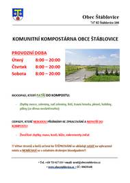 Vážení občané, dovolujeme si Vás informovat, že OBECNÍ KOMPOSTÁRNA je od 1. 3. 2026 v provozu v běžném režimu, a to: KOMUNITNÍ KOMPOSTÁRNA OBCE ŠTÁBLOVICE PROVOZNÍ DOBA Úterý 8:00 – 20:00 Čtvrtek 8:00 – 20:00 Sobota 8:00 – 20:00