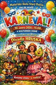 Obec Starý Petřín zve na dětský karneval 28.2.2026 od 15:00 hodin v KD Jazovice. Včer maškarní zabava pro dospělé od 20:00 hodi