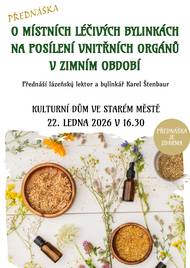 Chcete se dozvědět, jak vám mohou pomoci bylinky v zimě a jak posílit své tělo proti virozám a nemocem přirozeně s pomocí toho největšího pomocníka - naší přírody? Pak dorazte do kulturního domu dnes 22. ledna 2026 na přednášku O místních léčivých bylinkách na posílení orgánů v zimním období s lázeňským lektorem a bylinkářem Karlem Štenbaurem. Přednáška začíná v 16.30 a je zdarma.