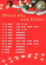 Otvírací doba pošty Partner ve Starém Městě pod Landštejnem v období vánočních svátků