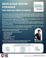 Obec Štarnov nabízí bezplatné základní právní poradenství pro své občany. Službu zajišťuje Advokátní kancelář Ritter-Šťastný s.r.o., která má dlouholeté zkušenosti v oblasti práva.