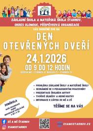 ✨️ Přijďte se podívat do naší školy✨️ Srdečně zveme na Den otevřených dveří Kdy? 24.1.2026 od 9:00 - 12:00 Kde? ZŠ - Štarnov 52, MŠ - Štarnov 41