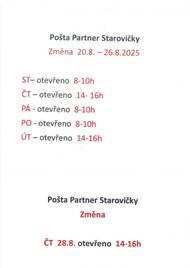 Pošta Partner, Drůbežárna Prace, Jednota - kačeny, VaK - stavy vodoměrů...