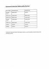 Stary Bydzov: Dne 19.9. t.r. - patek doje z provoznich duvodu ke zmene oteviraci doby posty nasledovne: 14.30 - 16.30.