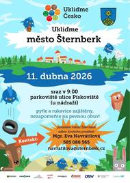 Tradiční akce Ukliďme Česko proběhne ve Šternberku v sobotu 11. dubna 2026, dobrovolníci se mohou hlásit na odboru životního prostředí městského úřadu u paní Evy Navrátilové, tel.: +420 585 086 565, e-mail: navratilova@sternberk.cz. Pytle a rukavice jsou zajištěny.
