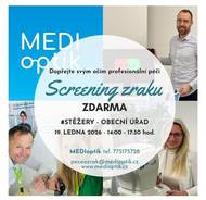 Den screeningu zraku pro občany – zdarma měření zraku v naší obci! Zveme všechny občany na bezplatné vyšetření zraku s odbornou konzultací, které proběhne 19.1.2026 od 14:00- 17:30 na Obecním úřadě – zasedací místnost. Vyšetření provede zkušený optometrista z MediOptik Hradec Králové pomocí moderního přístrojového vybavení. Na místě budete mít možnost nejen zjistit stav svého zraku, ale také si vybrat z mnoha brýlových obrub za výhodné ceny. Kompletní brýle nabízíme již od 1 900 Kč, multifokální skla od 5 000 Kč. Vybrané brýle pak dovezeme hotové opět k Vám do obce cca za 14 dní.. Služba je zcela bez závazků k nákupu – přijít může kdokoli, kdo si chce ověřit, že jeho oči fungují tak, jak mají.