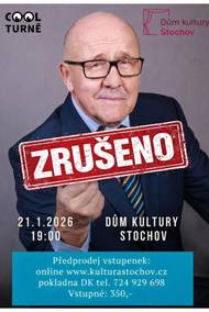 Vážení diváci, velmi nás mrzí, že musíme zrušit pořad Na slovíčko s Petrem Nárožným, který se měl konat 21. 1. 2026 v Domě kultury Stochov. Omlouváme se vám za vzniklé komplikace a děkujeme za pochopení.