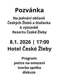Pozvánka na jednání občanů Českých Žlebů a Stožecka k výstavbě Resortu České Žleby