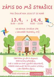 Zápis do mateřské školy ve Strašicích pro školní rok 2026/27 se uskuteční ve dnech 13.-14.04.2026. Pro usnadnění procesu je k dispozici také elektronický předzápis, který umožňuje on-line vyplnění potřebných dokumentů a rezervaci termínu osobní schůzky během řádného zápisu.