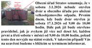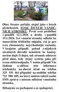 OBECNÍ ÚŘAD OZNAMUJE, ŽE OD 22.12.2025 – 4.1.2026 BUDE OBECNÍ ÚŘAD UZAVŘEN. V PŘÍPADĚ NUTNOSTI VOLEJTE NA TELEFONNÍ ČÍSLO PANA STAROSTY: 724 188 660. PŘEJEME VÁM KLIDNÉ A PŘÍJEMNÉ VÁNOČNÍ SVÁTKY A PŘEDEVŠÍM HODNĚ ZDRAVÍ V NOVÉM ROCE. Josef Horvát, starosta obce