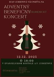 ECAV Ľubietová Vás pozýva na ADVENTNÝ BENEFIČNÝ EKUMENICKÝ KONCERT, dňa 12.12.2025 o 18,00 hod. v evanjelickom kostole A.V. Ľubietová.