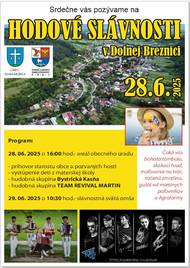 Obec Dolná Breznica Vás pozýva na hodové slávnosti, ktoré sa uskutočnia v sobotu 28.6.2025 od 16:00 hod. Tešiť sa môžete na vystúpenie detí zo ZŠ a MŠ, hudobnú skupinu Bystrická Kasňa a skupinu Team Revival Martin.