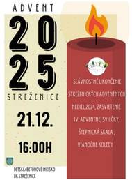 Srdečne vás pozývame na slávnostné ukončenie adventných nedieľ, ktoré sa uskutoční v nedeľu 21. decembra 2025 o 16:00 pri obecnom pódiu. Tešiť sa môžete na vystúpenie Štepnickej skaly.